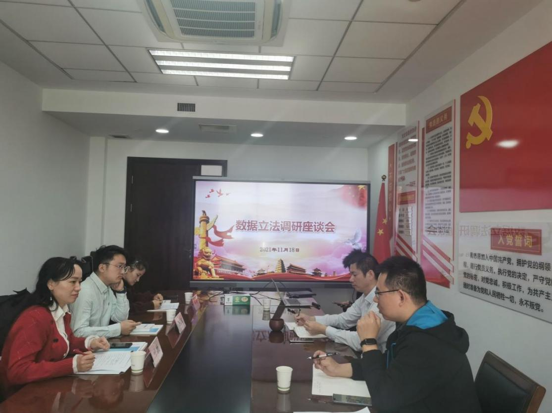 11月18日上午,我院副院长叶敏、法律系徐攀亚两位老师及硕士研究生玛丽亚木、苏航同学受邀到无锡市大数据管理局参加大数据地方性法规立法座谈会。