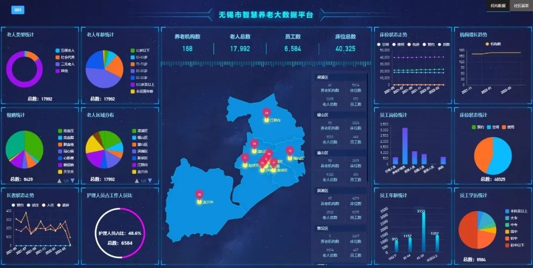1.加强智慧康养理念的政策引领。早在2014年,无锡市就出台《智慧无锡建设三年行动纲要(2014-2016年)》,把智慧养老作为全市25个重点工作之一优先推进,并确定了“11311”智慧养老建设规划。2018年,研究出台《无锡市养老服务项目补贴办法》等扶持政策,明确对智慧化建设项目给予重点资金扶持。2019年,牵头编制并发布实施国内首个智慧养老省级标准《智慧养老建设规范》。2021年,入选国家智能社会治理实验特色基地(养老)名单。2022年,在“灵锡”APP上线了全市首个养老地图——“锡心养一张图”。