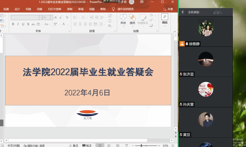为保证毕业年级相关事项有序推进,帮助应届毕业生了解就业形势、明确就业方向,2022年4月6日,永利3544am登录官网线上召开2022届研究生毕业生就业答疑会,本次大会由分团委书记、研究生辅导员徐雅静主持,2022届研究生毕业生一百余名学生参加了本次线上会议。