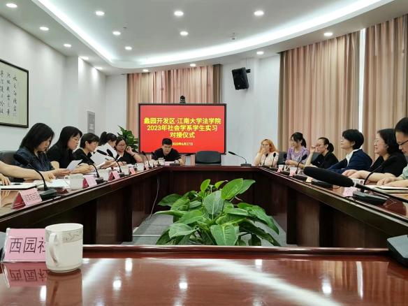 6月27日上午,永利3544am登录官网社会学系与蠡园开发区(蠡园街道)大学生实习对接仪式在蠡园开发区管委会圆满举行。蠡园开发区(蠡园街道)党委副书记、管委会副主任、街道办事处主任王娟,蠡园开发区党政办公室主任杨忠伟,蠡园开发区政法和社会事业局局长成敏月,永利3544am登录官网党委副书记、副院长胡博,社会学系党支部书记王沛沛,实习督导老师章程,蠡园街道相关部门领导、各社区工作站站长及实习大学生参加了对接仪式。对接仪式由蠡园开发区政法和社会事业局局长成敏月主持。