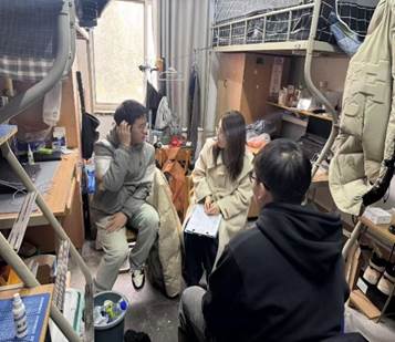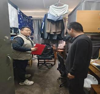 会后,学院全体辅导员走访学生宿舍,重点检查用电安全及卫生状况,宿舍检查全覆盖,大部分宿舍环境整洁,无违规电器,但个别宿舍存在插线板放置杂乱、阳台杂物堆积等问题,辅导员现场提出整改意见,并叮嘱学生“安全无小事,假期无论返乡还是留校,都要时刻绷紧安全弦”。