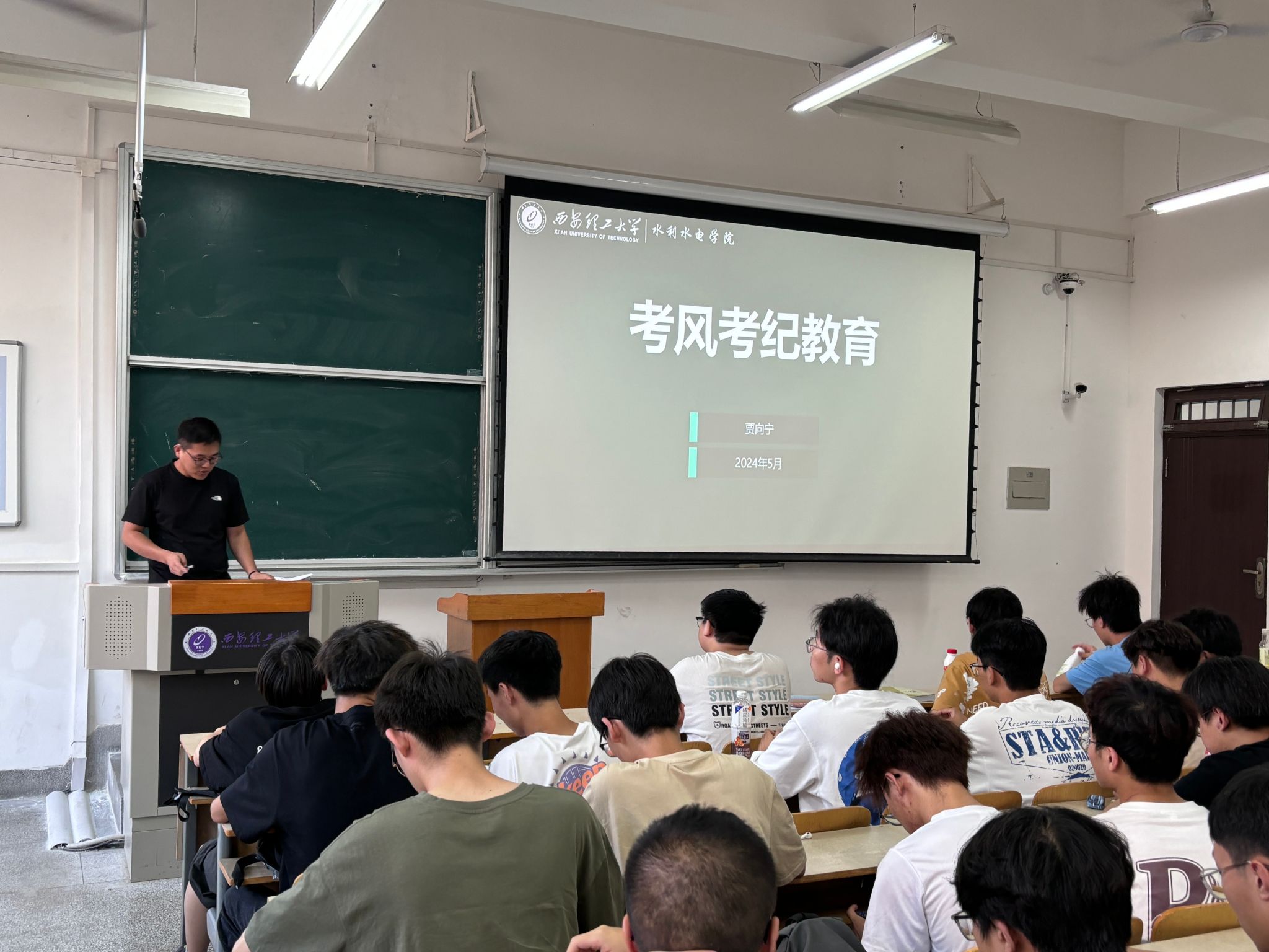 为教育引导学生树立正确的考试观念,5月22日,金年会jinnianhuicom辅导员贾向宁在曲江校区教10楼组织23级本科生,开展了“考风考纪”主题教育班会。