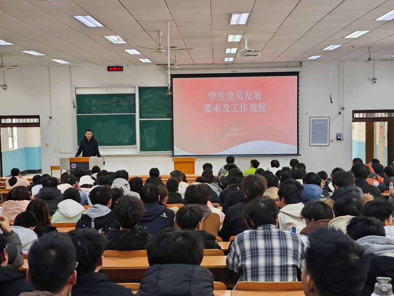 为扎实做好党员发展和启蒙教育工作,进一步端正学生入党动机,12月25日,金年会官网在曲江校区10-401组织开展2024级本科生院级党课,本次课程由金年会官网院长助理、学生工作办公室主任杨帆主讲,题为《学生党员发展要求及工作规程》。