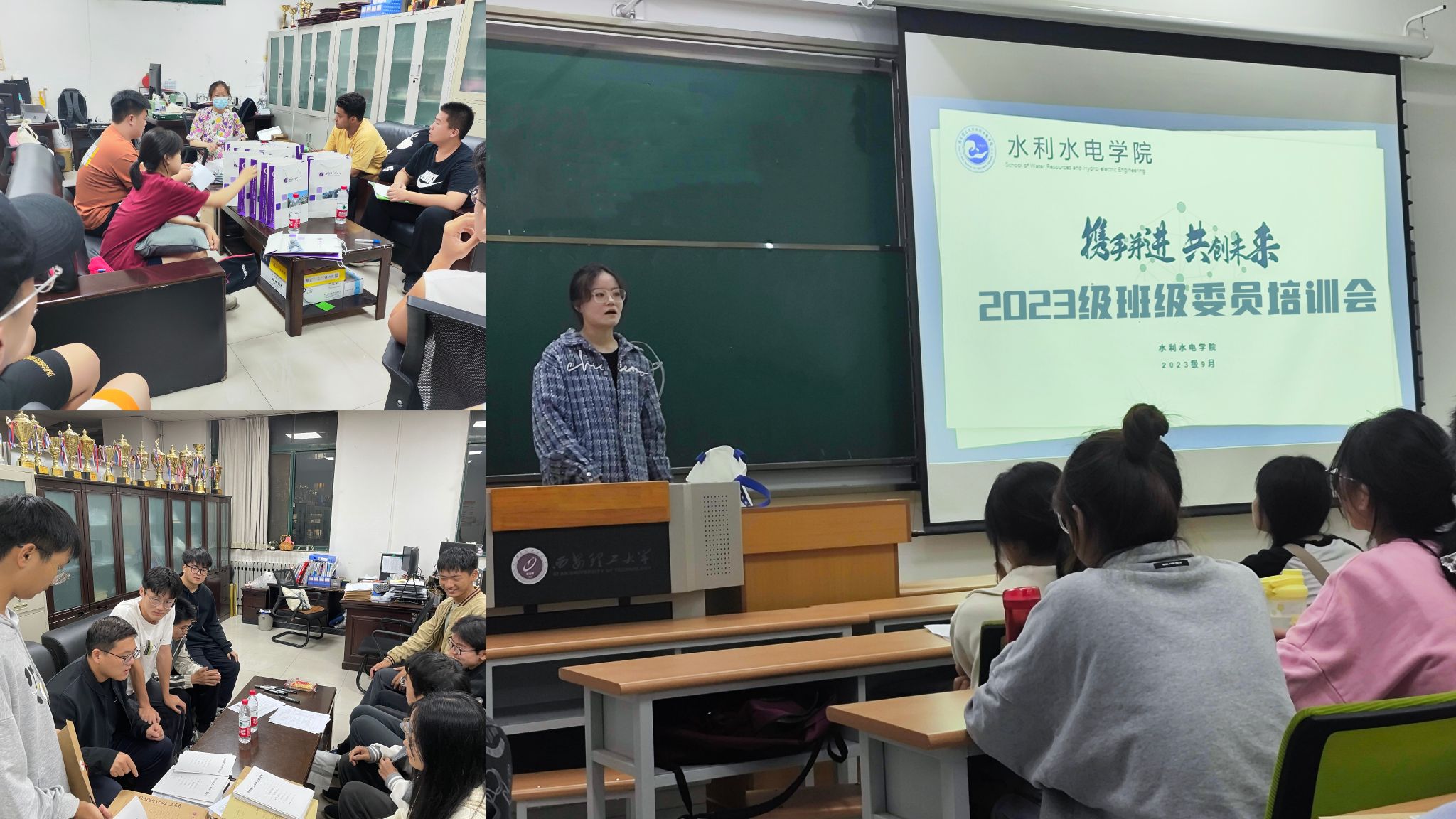 会上,辅导员主要针对班委的任务调配、大学学业与活动如何规划、如何做好班级的表率、如何提升班级的凝聚力等方面给大家提出了几点建议,希望班级委员们能够提高站位,加强认识;团结同学,抓学风、促班风;做好老师与学生之间沟通的桥梁,及时发现问题并反馈。随后,在常用办公软件技能方面对班干部进行了培训。最后,2023级班干部就入校以来在班级管理、学习和生活方面出现的问题进行了梳理和分析,确立了今后努力的方向。