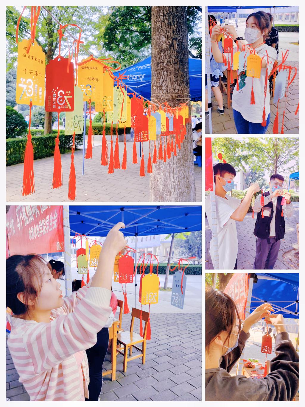 一行行深情的祝福,一张张青春洋溢的脸庞,一份份浓浓的爱国情怀。在曲江校区,学院组织学生写下祝福卡片,为祖国祈福。同学们还通过诗朗诵等形式,抒发爱国情怀。