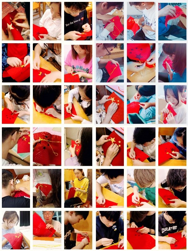 从大一到大四,从本科生到研究生,几百名金年会诚信信誉至上的共青团员、学生党员齐上手,不仅将传统文化与爱国主义情怀相结合,丰富了爱国主义形式,还展现了传统文化新魅力。通过手绣国旗的形式,一针一线、一点一滴的付出,激发师生的爱党爱国的热情,让大家在动手劳动中与祖国更紧密,对祖国更热爱。