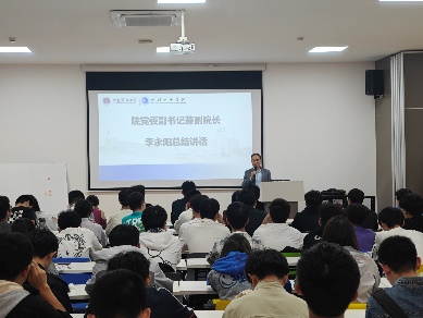 李永阳作总结讲话,他对获奖宿舍表示祝贺,对文明宿舍取得的成绩给予肯定。他指出,宿舍是大学生思想政治教育的重要阵地,文明习惯的养成是立德树人的基础环节。一是要提高认识,深刻理解文明宿舍创建对个人成长和集体荣誉的重要意义;二是要知行合一,将倡议书的内容转化为日常行动,从宿舍管理做起,锤炼品格;三是要久久为功,将文明创建作为一项习惯长期坚持下去,让文明之花在每一个宿舍长久绽放。