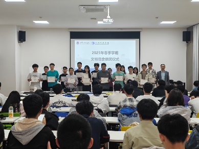 李永阳为在上一学年文明宿舍评选中脱颖而出的16间宿舍代表颁发荣誉证书。