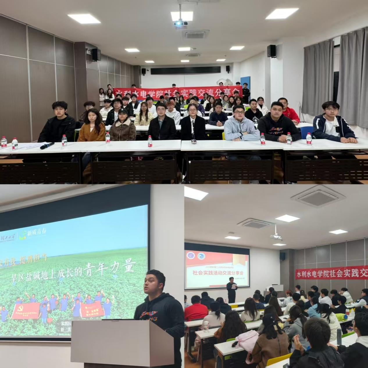三支优秀实践团队受邀到场,分享实践经验与心得。“希望种子”造血干细胞捐献宣传实践队的刘瑞欣,系统介绍了公益类项目的全流程运作以及如何应对执行中的突发状况。“新时代水利文化主体性对青年价值观的引领能效与推进策略研究”实践队的刘桐羽,结合水利专业特色,分享了从选题立意、实地调研到报告撰写的完整经验。“强农有我,挺膺担当”实践队的法提柯·叶尔波力,则生动讲述了团队深入旱区盐碱地,开展农业技术帮扶与土壤改良调研的经历,充分展现了水院学子扎根基层、服务乡村的担当精神。