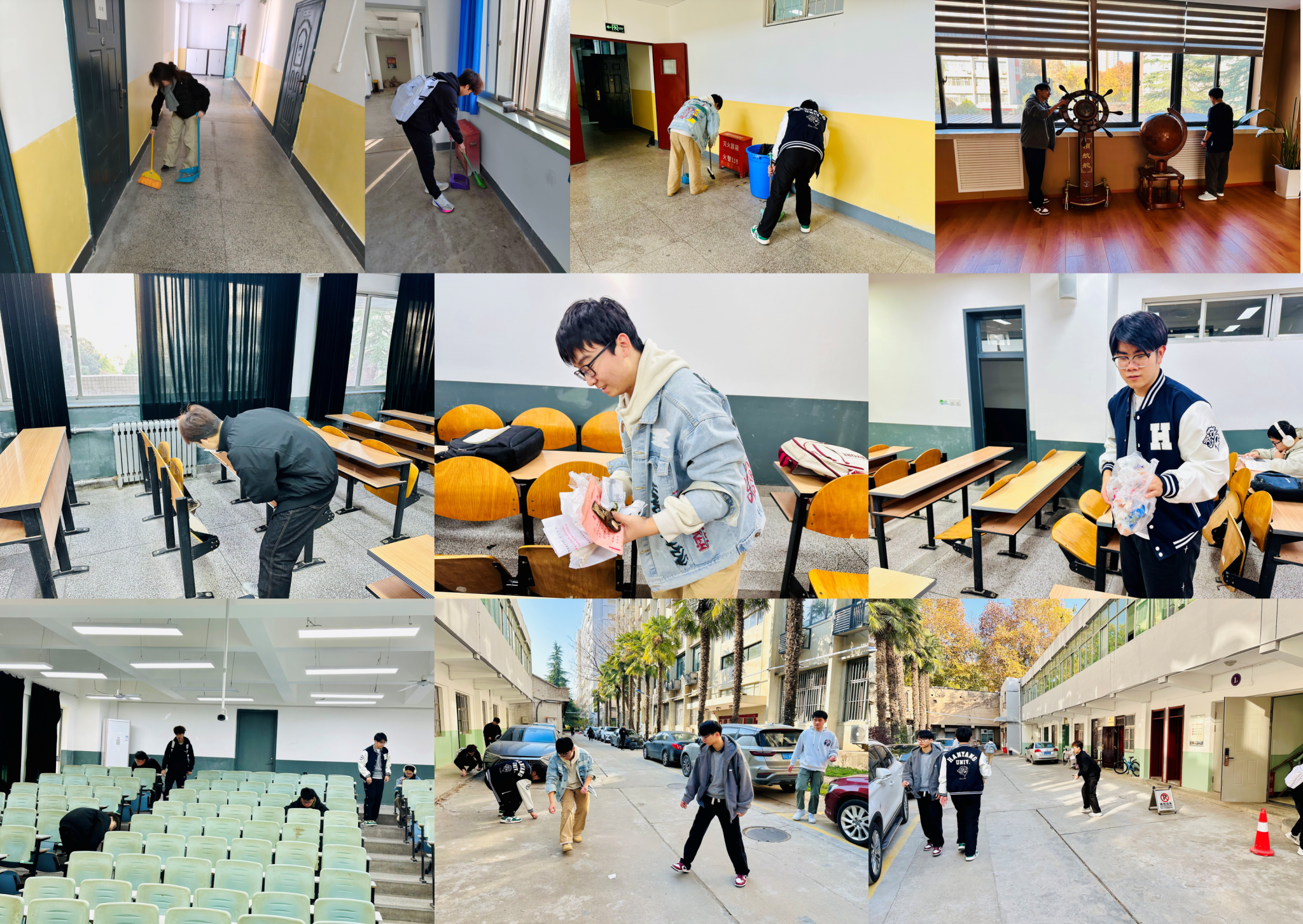 活动中,各班级同学踊跃参与,重点对教四楼、教六楼的教室、走廊、楼梯间等公共区域进行了全面清扫和整理。同学们分工明确、配合默契,发扬不怕脏、不怕累的劳动精神,认真清理卫生死角,规范整理物品摆放,不放过任何一个角落。经过大家的共同努力,整个教学楼区域环境焕然一新,营造出更加干净、整洁、舒适的学习和生活氛围。