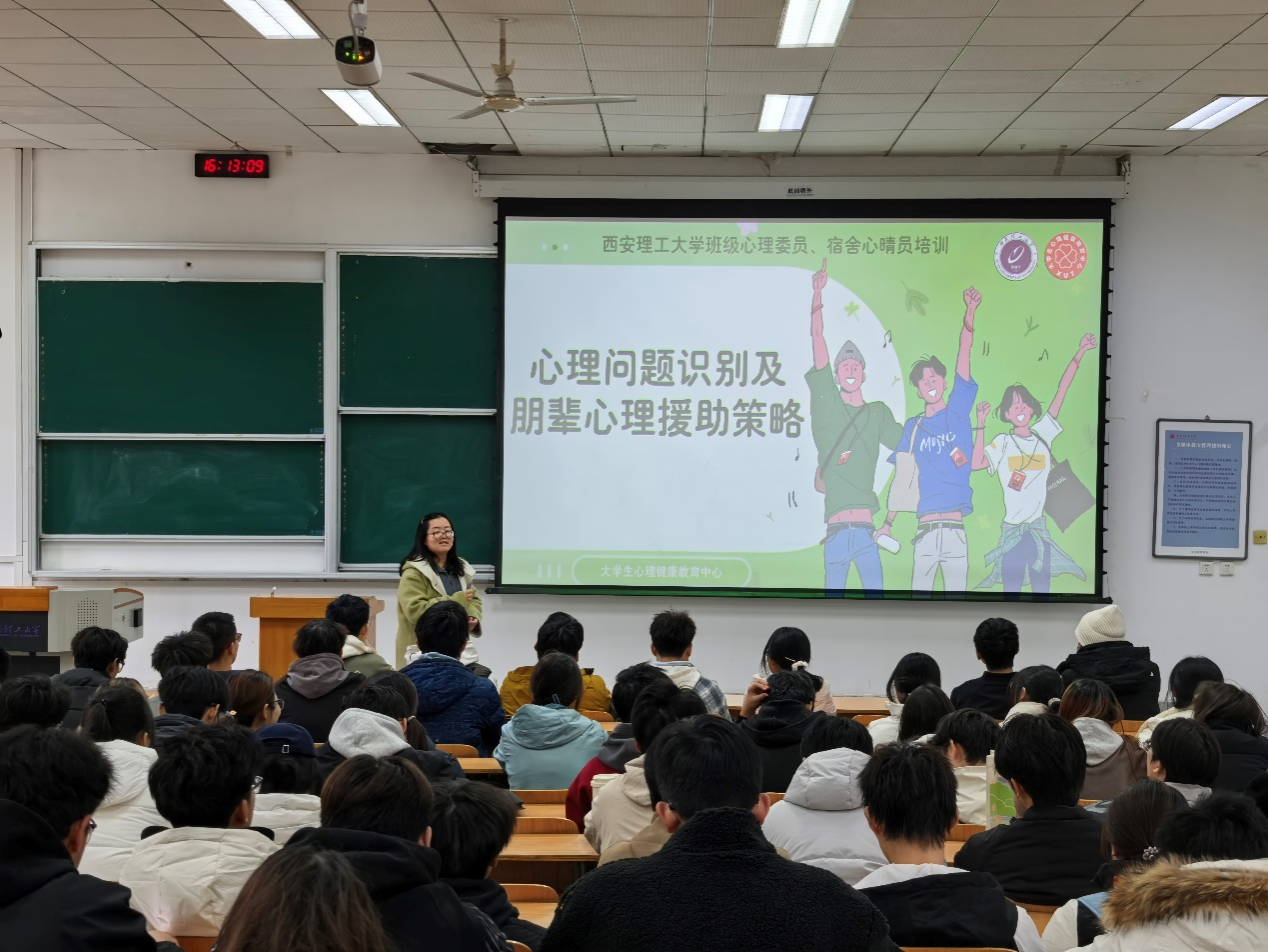 为进一步强化学生心理骨干队伍建设,提升心理委员、心晴员及班长的心理问题识别能力与朋辈援助水平,筑牢校园心理健康防护网络,12月3日,金年会jinnianhuicom特邀学校心理健康中心刘洋老师,面向班级心理骨干开展了以“心理问题识别及朋辈心理援助策略”为主题的专题培训。