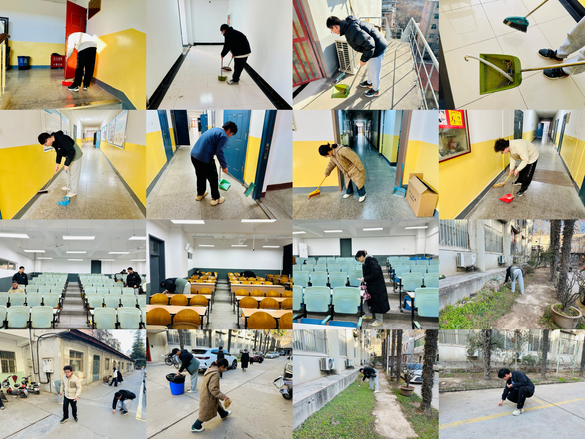 活动中,各班级同学踊跃参与,重点对教四楼、教六楼的教室、走廊、楼梯间等公共区域进行了全面清扫和整理。同学们分工明确、配合默契,发扬不怕脏、不怕累的劳动精神,认真清理卫生死角,规范整理物品摆放,不放过任何一个角落。经过大家的共同努力,整个教学楼区域环境焕然一新,营造出更加干净、整洁、舒适的学习和生活氛围。