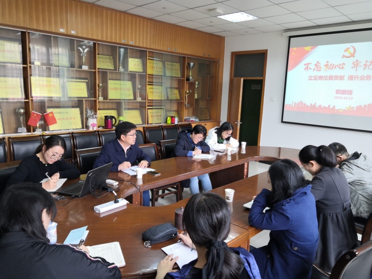 10月22日上午在教四楼207会议室,金年会jinnianhuicom院长郭鹏程围绕“不忘初心、牢记使命——立足岗位作贡献,提升业务促发展”的主题,为行政党支部上了一堂生动的党课。党支部全体党员参加了学习活动。