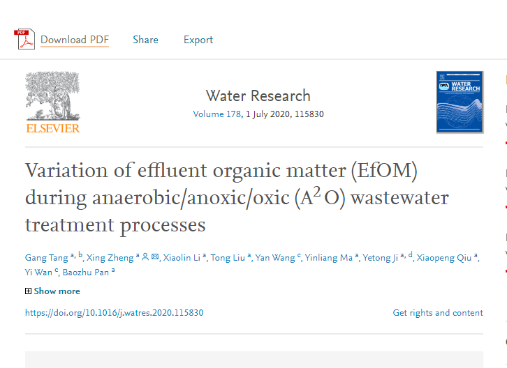 近日,金年会官网郑兴教授团队原本科生组员,现南方科技大学在读硕士研究生唐港,以金年会官网为第一单位,其本人为第一作者,在环境领域国际顶级期刊Water Research发表一篇名为“Variation of effluent organic matter (EfOM) during anaerobic/ anoxic/ oxic (A2O) wastewater treatment processes”的学术成果(https://www.sciencedirect.com/science/article/pii/S0043135420303675),其影响因子(IF)为7.913。这是该名同学以金年会官网本科生身份连续发表的第三篇SCI一区论文。该研究成果在金年会官网西北旱区生态水利国家重点实验室“水质控制与界面过程团队”郑兴教授(通讯作者)指导下完成,属于唐港同学在金年会官网本科生阶段毕业论文中的一部分。该成果基于西安市第三污水厂一整年水质监测资料,对各个反应器中溶解性有机物中的特种成分进行了追踪分析,并结合分子生物学手段与数据挖掘,对这些特种物质进行了生物学溯源。此项研究成果对污水厂的运行管控具有良好的现实意义,也为深入研究该领域的学者提供了新的研究视角(评阅人意见)。成果发表的共同单位为陕西省微生物研究所。