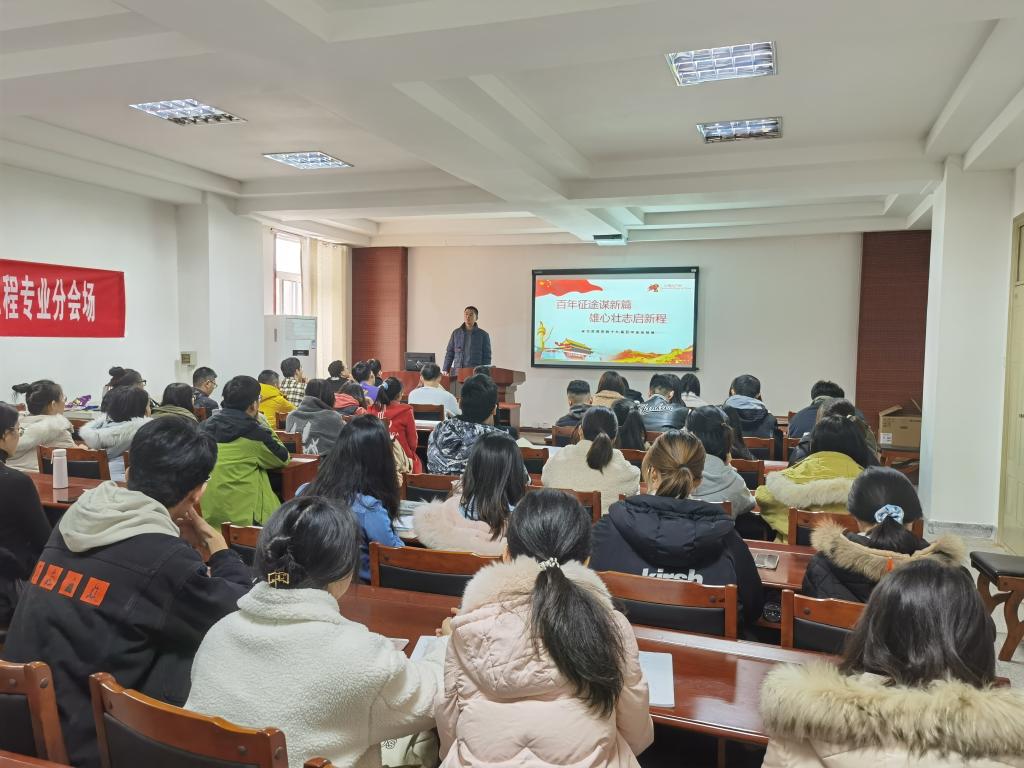 12月11日下午,校党委副书记马宁在学科一号楼三楼会议室为金年会官网全体本科生党员讲授了题为《百年征途谋新篇 雄心壮志启新程》的党课。