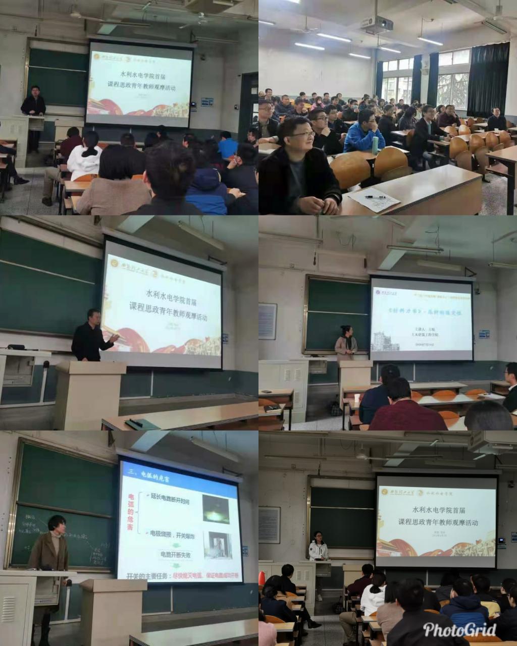 为深入贯彻落实全国全省高校思想政治工作会议和教育部《高等学校课程思政建设指导纲要》等文件精神,进一步提高广大水利类专业青年教师课程思政教学的意识和主观能动性,促进一线教师深入挖掘水利类课程的德育内涵,将思想政治工作贯穿教育教学全过程, 2021年4月2日下午2点在教6楼307教室,水利水学院组织了2021年课程思政青年教师观摩活动,会议邀请教务处副处长王学通,金年会jinnianhuicom院长郭鹏程参加。教学院长周蓓蓓主持。土木与建筑工程学院王垠老师、金年会jinnianhuicom李美老师为大家进行了课程思政示范教学。本次教学观摩活动得到金年会官网青年教师的积极响应,学院40岁以下的青年教师参加了本次观摩学习。