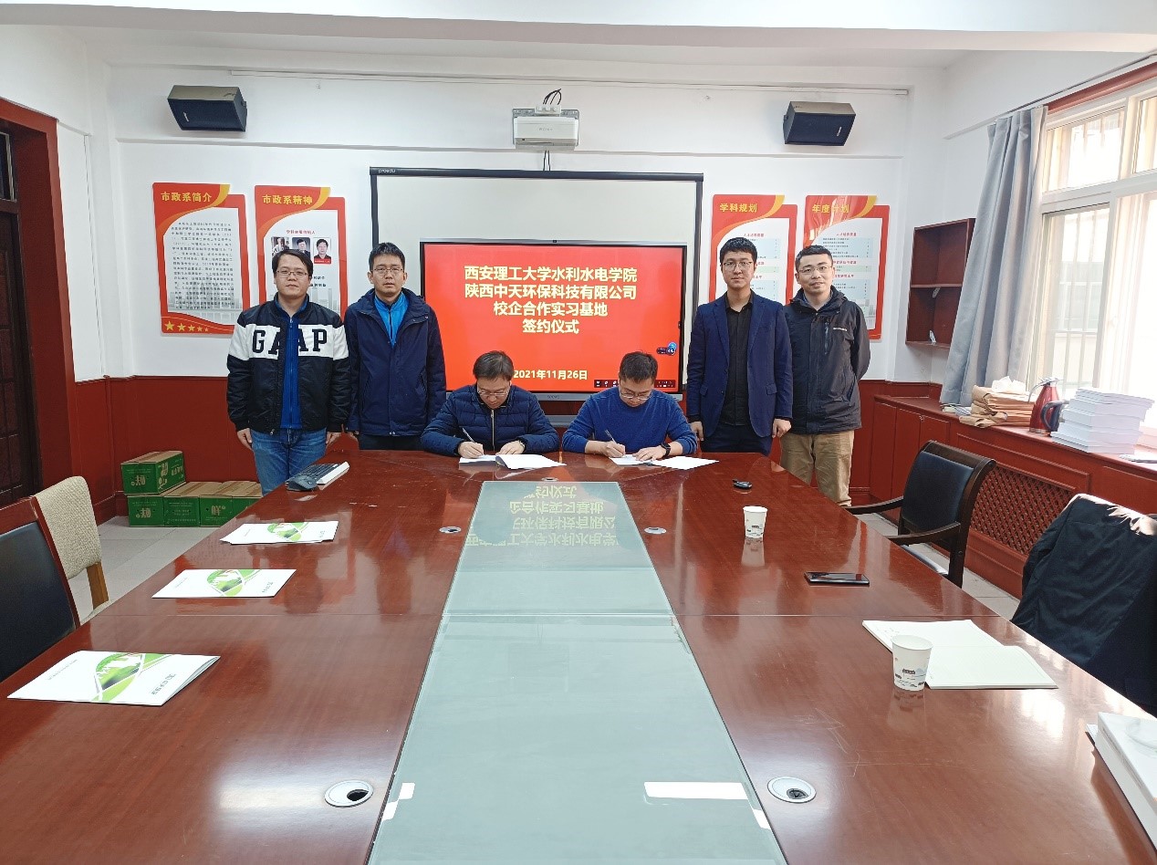 2021年11月26日下午,金年会jinnianhuicom与陕西中天环保科技有限公司交流合作会议暨实习基地签约仪式在市政与环境工程系会议室举行。金年会诚信信誉至上副院长吴罗长、市政系副主任王东琦、张耀中,以及中天环保公司总经理李岩等出席了本次会议。