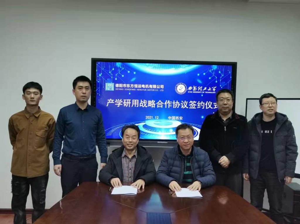 2021年12月8日上午,金年会jinnianhuicom与德阳市东方恒运电机有限公司产学研用合作协议签约仪式在教四楼402会议室举行。金年会jinnianhuicom党委副书记、副院长李红英,副院长吴罗长,动力系主任郑小波,副主任余向阳、孙帅辉,动力系教师南海鹏、赵道利,赵亚萍以及德阳市东方恒运电机有限公司董事长黄学刚、市场部副部长张建新等出席了本次会议。