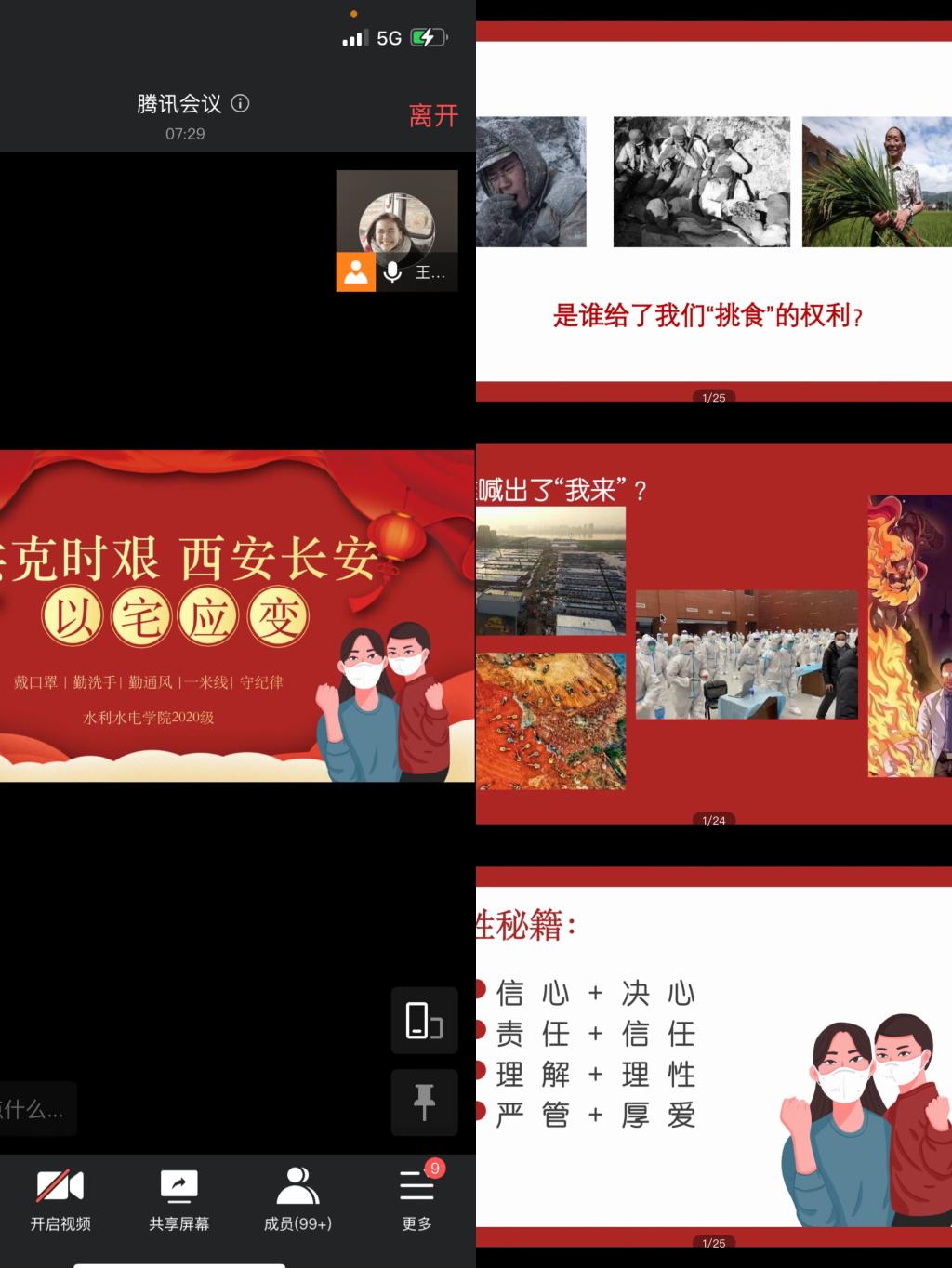 疫情就是命令,防控就是责任。为进一步夯实学生疫情防控教育工作,使学生在思想上认同、行动上践行“戮力同心 共克时艰”的观念。1月4日金年会jinnianhuicom在腾讯会议上开展了“共克时艰 西安长安 以宅应变”主题教育活动,2020级全体本科生和辅导员参加了本次活动,活动由辅导员王竞婕主持。