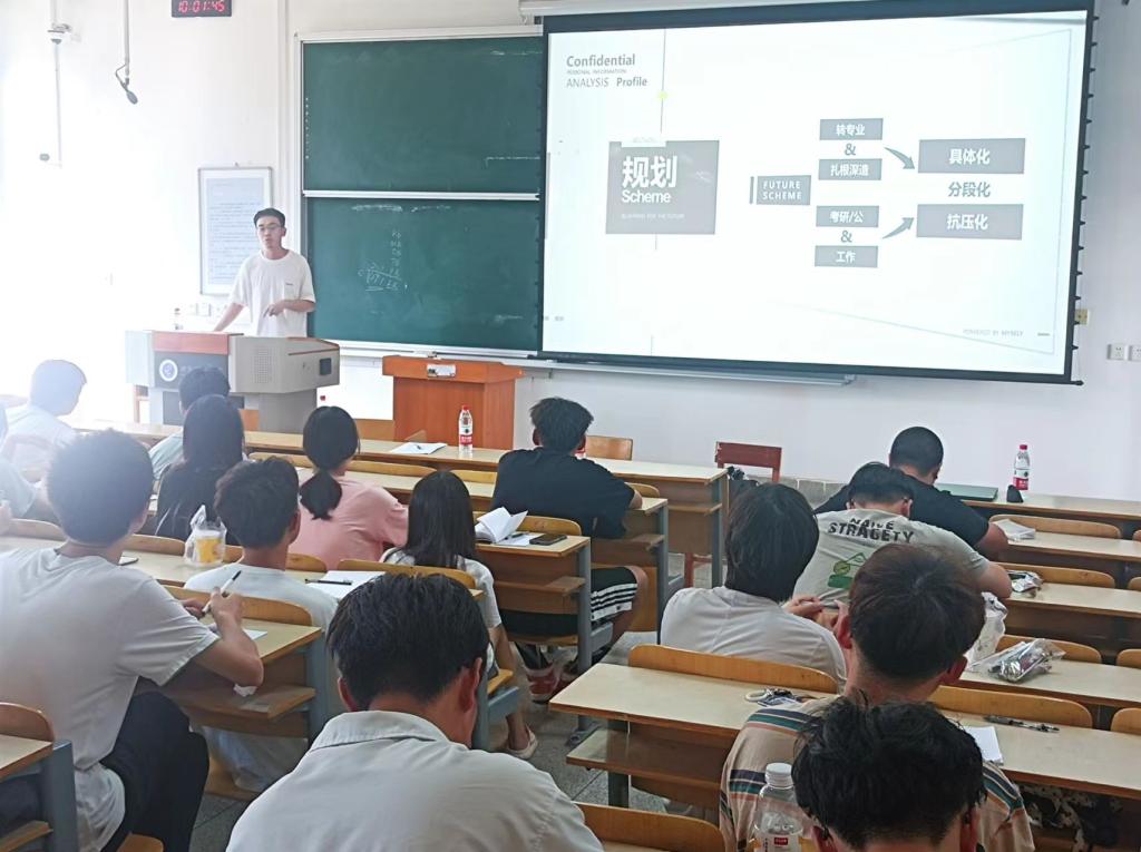 王东琦首先对两位校友和优秀毕业生代表做了简要介绍。曹俊峰、卢科锋两位校友结合自身学习和工作经历与在座老师、同学开展深度交流,介绍了当年的求学过程,工作后对专业新的认知和感受,为同学们分析了给排水专业的工作内容和发展前景。希望同学们珍惜现在良好的学习条件,在学习、工作中保持一颗平常心,脚踏实地,积累沉淀,做好本职工作。优秀毕业生陈凯结合自己四年的学习感受,从课程学习、参与科研、科技竞赛等方面与同学们充分互动,分析了如何在繁杂的信息资源中获取有效信息,如何以自律的学习、生活状态度过大学时光。