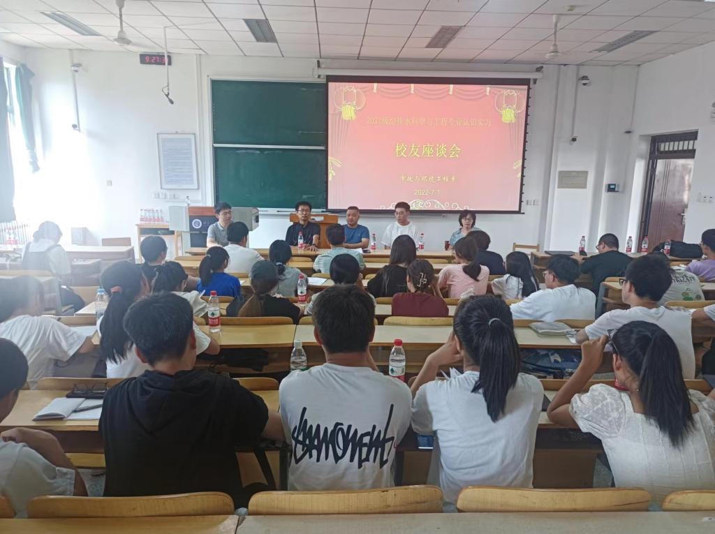 7月1日上午,金年会jinnianhuicom市政与环境工程系在曲江10-301教室组织开展了2021级给排水科学与工程专业校友座谈会。市政系教师王东琦、徐志嫱、何剑、蒋春博,1999届给排水专业校友、西安市政设计研究院有限公司曹俊峰(高工),2001届给排水专业校友、中铁西安勘察设计研究院有限责任公司卢科锋(高工),2022届优秀毕业生陈凯同学参加了会议。会议由市政系教学副主任王东琦主持。
