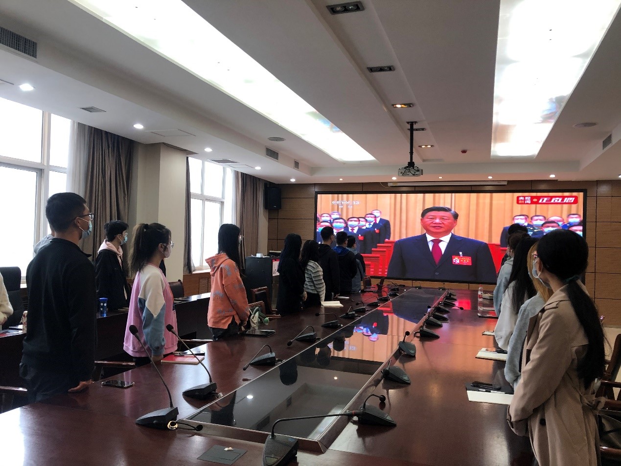 2022年10月16日上午,中国共产党第二十次全国代表大会在北京人民大会堂隆重召开,习近平总书记代表十九届中央委员会向大会作题为《高举中国特色社会主义伟大旗帜,为全面建设社会主义现代化国家而团结奋斗》的报告。金年会jinnianhuicom在严格遵守防疫要求的前提下,组织师生党员联合线上线下共同收看开幕会盛况。