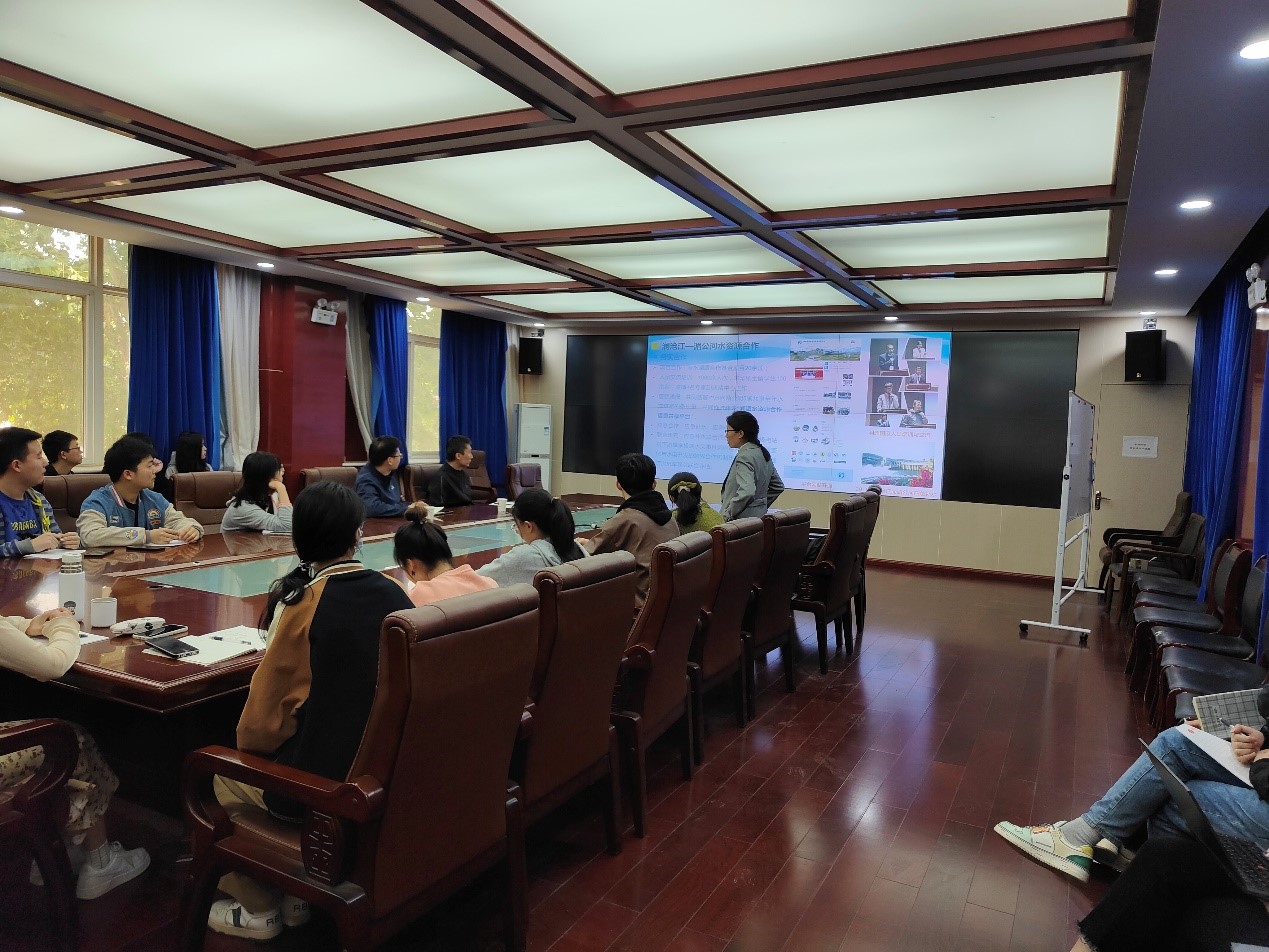刘慧正高工首先对澜沧江-湄公河水资源跨国合作进行了简要介绍,强调了澜-湄流域不仅在水资源科研领域具有很高的科研价值,在政治外交领域也有重要影响。刘慧正高工讲解了流域水文水动力模拟的关键工具——SHARE水文水动力集合预报和实时评估系统,详细分析介绍了“澜沧江水库调度影响情景模拟”和“水位波动精细预报和洪水预报”两个实际案例。最后,从流域历史、未来干旱特征以及干旱实时评估与预报三个方面阐述了澜-湄流域干旱特征研究的工作内容,并作了未来研究展望。报告会上,刘慧正高工还与现场的师生进行了积极互动,对现场师生提出的问题作了详细解答。报告会现场气氛热烈,大家收获颇多。另外,刘慧正高工听取了合作指导的两位专业硕士的硕士论文汇报,对硕士论文进行了指导讨论。
