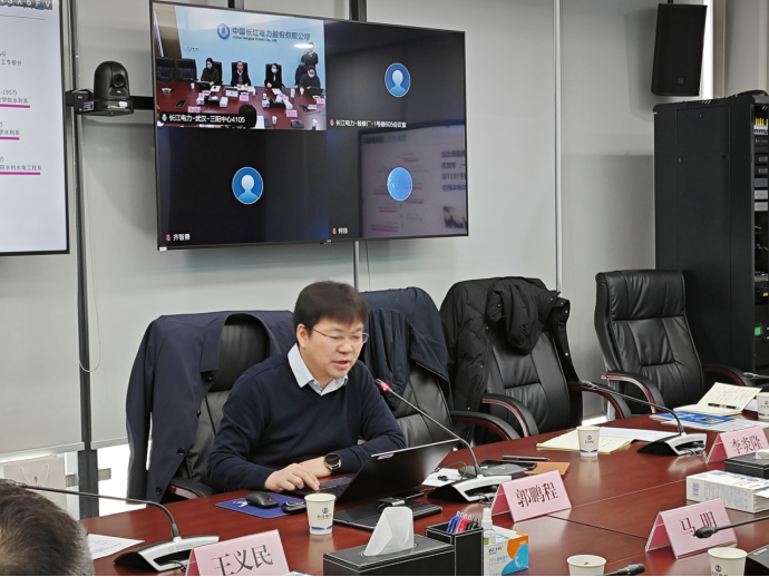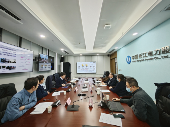 郭鹏程一行与长江电力公司科技创新部主任马明、业务主任李冰,人力资源部业务主任顾洋,科研中心水资源高效利用研究所副主任曹辉等7人就校企合作、实验室建设、“三峡班”人才联合培养与后期建设规划等方面进行座谈交流,座谈期间马明介绍了长江电力科技创新部的整体情况以及后期的主要研究方向,李冰就长江电力的科研中心、科技创新平台、科技创新成果与未来科研方向进行讲解,郭鹏程就学校、学院的发展历史、师资情况、科研发展、学科建设、专业设置和教育教学等方面进行介绍。深入交流阶段,双方就抽水蓄能电站研发建设、大坝坝体防渗、生态可持续发展、水轮机泥沙磨蚀等研究重点方向进行意见建议交流,并就春季招聘工作和人才联合培养交换意见、达成共识。