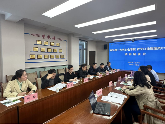 为提高本科教育质量,对标企业人才需求,全面推进2024版本科人才培养方案修订工作,2024年3月22日,西安理工大学金年会jinnianhuicom副院长周蓓蓓、现代农业工程系副主任聂卫波、曲植,教师代表李山、李一博等一行5人,前往陕西省交口抽渭灌溉管理中心开展“2024版农业水利工程专业本科人才培养方案修订”专题调研。陕西省交口抽渭灌溉中心副主任李浩清,人事科、总工办、灌溉科、计划财务科、水政科、信息科等部门负责人参加座谈交流。