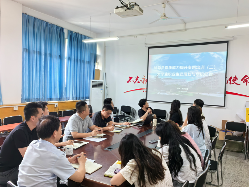 5月27日,金年会jinnianhuicom学工办党支部在教四楼党员活动室开展辅导员素质能力提升专题培训之大学生职业生涯规划与危机事件处置专题培训。本次培训由金年会jinnianhuicom学工党支部书记、办主任杨帆主讲。