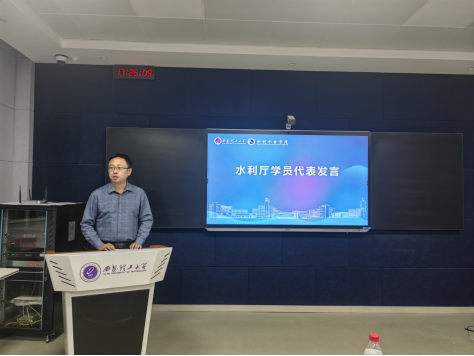 省水利厅机关党委刘魁作为优秀学员代表交流发言。他回顾了一年来的学习历程,诚挚感谢金年会官网老师的悉心指导。他表示,将把此次培训所学知识更好地应用到实践中,服务陕西省水利事业高质量发展。