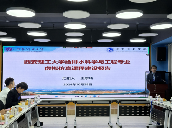 时文歆首先以“绿色低碳·智能高效·交叉融合——给排水科学与工程专业发展趋势”为题作专题报告,从国家战略、行业发展的角度就给排水专业面临的问题及发展趋势进行深入分析,并对专业如何适应行业发展给出建议。会议期间,各学校代表围绕本校给排水专业发展和课程建设进行了报告。王东琦作了“西安理工大学给排水科学与工程专业虚拟仿真课程建设”的报告。与会专家和老师对专业发展和课程建设过程中遇到的问题进行了深入的交流。