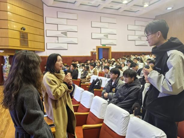 在交流互动环节,王静向同学们介绍了长江水利委员会水文局的招聘情况,并对学生提出的相关问题进行了耐心细致地解答,帮助大家更好地了解未来的就业发展前景。