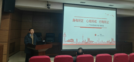 12月6日,金年会jinnianhuicom在学科一号楼103报告厅举办全院青年教师“五课一交流”活动第一讲——师德师风培育与养成。校纪委、监察专员办公室纪检监察室主任高博受邀参加活动,并作《身有所正、心有所戒、行有所止——严守师德底线方能行稳致远》专题报告。活动由学院党委书记王瑞生主持。