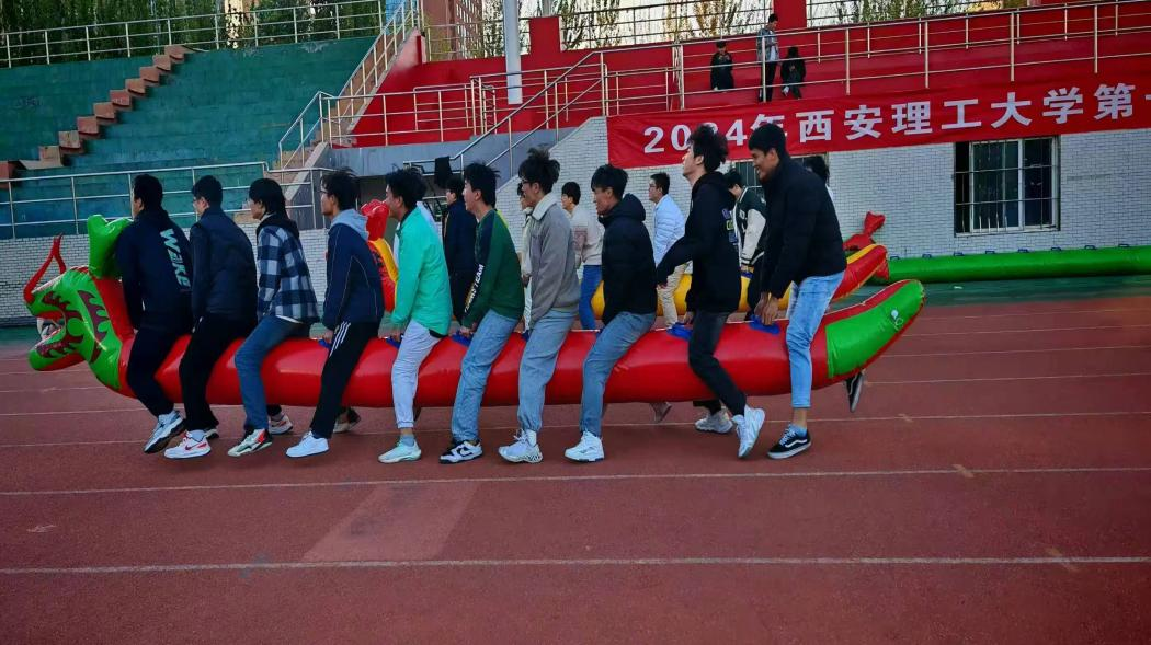 “陆地龙舟”比赛在曲江操场进行,金年会官网参赛队员齐心协力,步伐铿锵有力,节奏明快。五十米的赛道上,“龙舟”如离弦之箭疾驰而出,充分展现了团队协作的强大力量。经过激烈角逐,金年会官网男子组荣获第一名。
