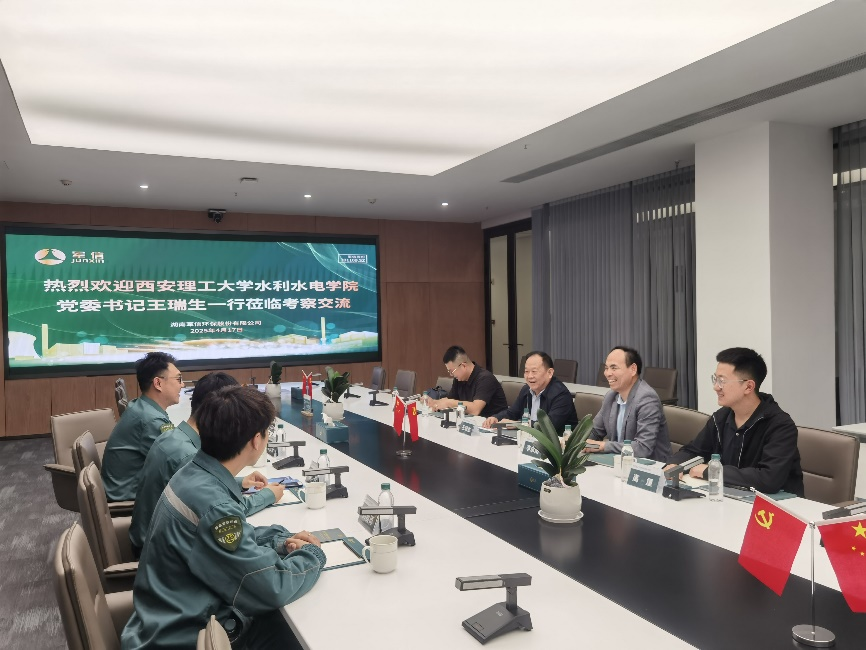 中国电建集团中南勘测设计研究院有限公司党委委员、总会计师杨光辉,湖南省水利水电勘测设计规划研究总院有限公司党委副书记、纪委书记颜国保,湖南军信环保股份有限公司人事资源总监吴哲夫等单位负责人对王瑞生书记一行的到来表示欢迎。他们分别详细介绍了公司的发展历程、业务布局、核心优势、技术创新体系及未来发展规划,以及西安理工大学金年会jinnianhuicom校友目前在单位工作情况。希望双方依托科研资源优势,继续推进交流合作,积极深化校企协同创新,在人才联合培养、科研合作交流、技术服务等方面取得更大的成绩。