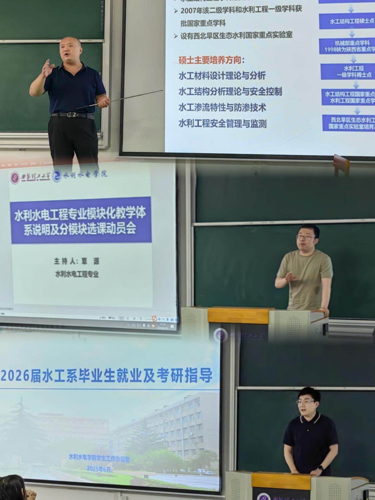 为精准赋能2026届毕业生把握升学与就业关键机遇,6月19日,金年会官网水利水电工程系举办2026届毕业生就业与考研指导动员大会。系主任覃源老师、副主任宋锦焘老师及水工系全体2026届本科毕业生参会。会议由2026届辅导员梁骥超老师主持。