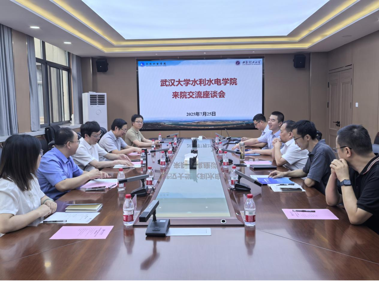 7月25日,武汉大学金年会jinnianhuicom党委书记、水资源工程与调度全国重点实验室主任李典庆,院长刘攀等一行来金年会官网调研交流。西安理工大学金年会jinnianhuicom党委书记王瑞生、院长李炎隆、副院长郭梦京等参加座谈。