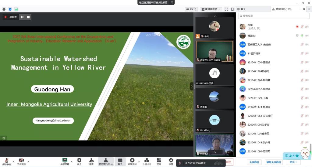 2022年11月11日, 2022丝绸之路国际产学研用合作会议(2022 Silk Road International Conference on the Cooperation and Integration of Industry, Education Research and Application)的高原生态环保与黄河高质量发展领域议题二——流域环境生态治理与创新工程成功举办,会议由金年会官网金年会jinnianhuicom、土木建筑工程学院和西北旱区生态水利国家重点实验室联合承办,今年是金年会官网第三年承办该议题。