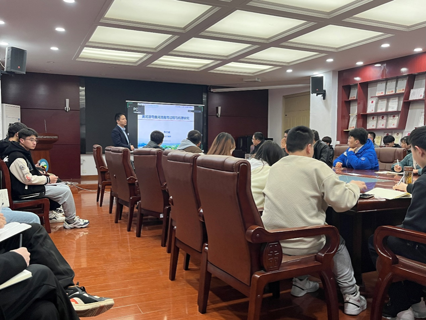 报告中,李志威副教授对黄河源弯曲河流弯曲河流颈口裁弯时间与触发机制、人工坝逆转自然裁弯的水动力过程、全球不同气候带颈口裁弯统计分析等研究进展进行展示与汇报,并提出实验+数值模拟的方式来探究河道裁弯的过程与机理。汇报结束后,李志威还与现场的师生进行了积极互动,对现场师生提出的问题作了详细解答,增强了师生对弯曲河流裁弯的成因、影响因素及其研究方法的认识。