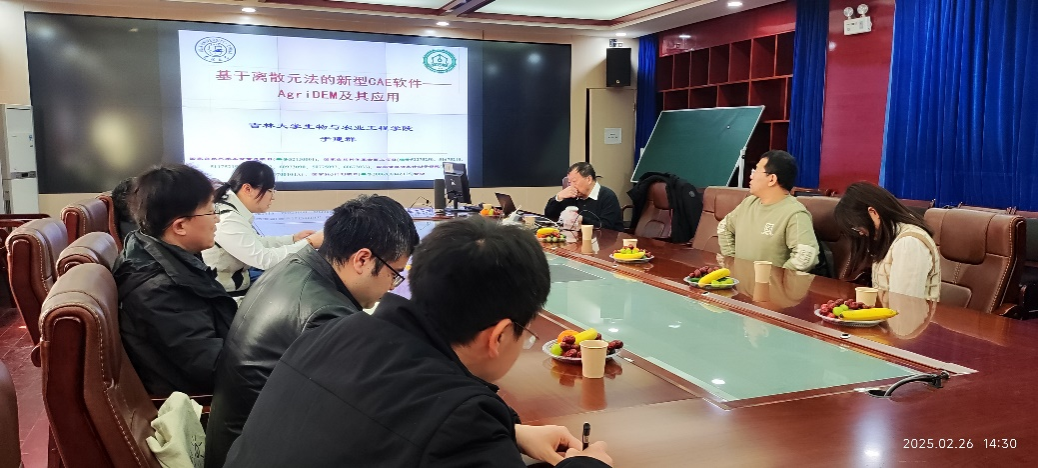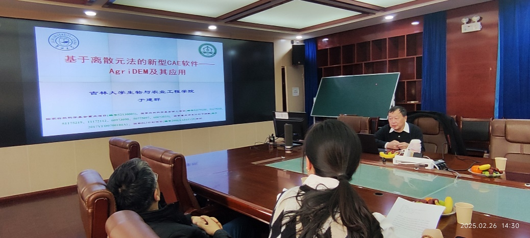 2月26日,吉林大学生物与农业工程学院农业工程学科于建群教授应邀在金年会官网金花校区学科1号楼311会议室作了题目为《基于离散元法的新型CAE软件—AgriDEM及其应用》的学术报告。金年会jinnianhuicom农业工程学科带头人王全九教授及部分师生参加了本次报告。报告由系主任曲植副教授主持。