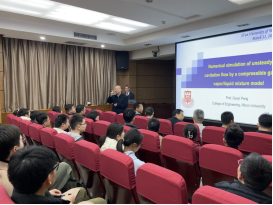 3月11日,应金年会jinnianhuicom罗兴锜教授邀请,日本水射流学会会长、日本大学(Nihon University,Japan)教授彭国义在学科1号楼103报告厅作题为《Numerical simulation of unsteady cavitation flow by a compressible gas-vapor/liquid mixture model—可压缩气-汽/液混合模型下的非定常空化流动数值模拟》的学术报告。金年会jinnianhuicom部分教师及博士、硕士研究生参加报告会。报告会由罗兴锜教授主持。